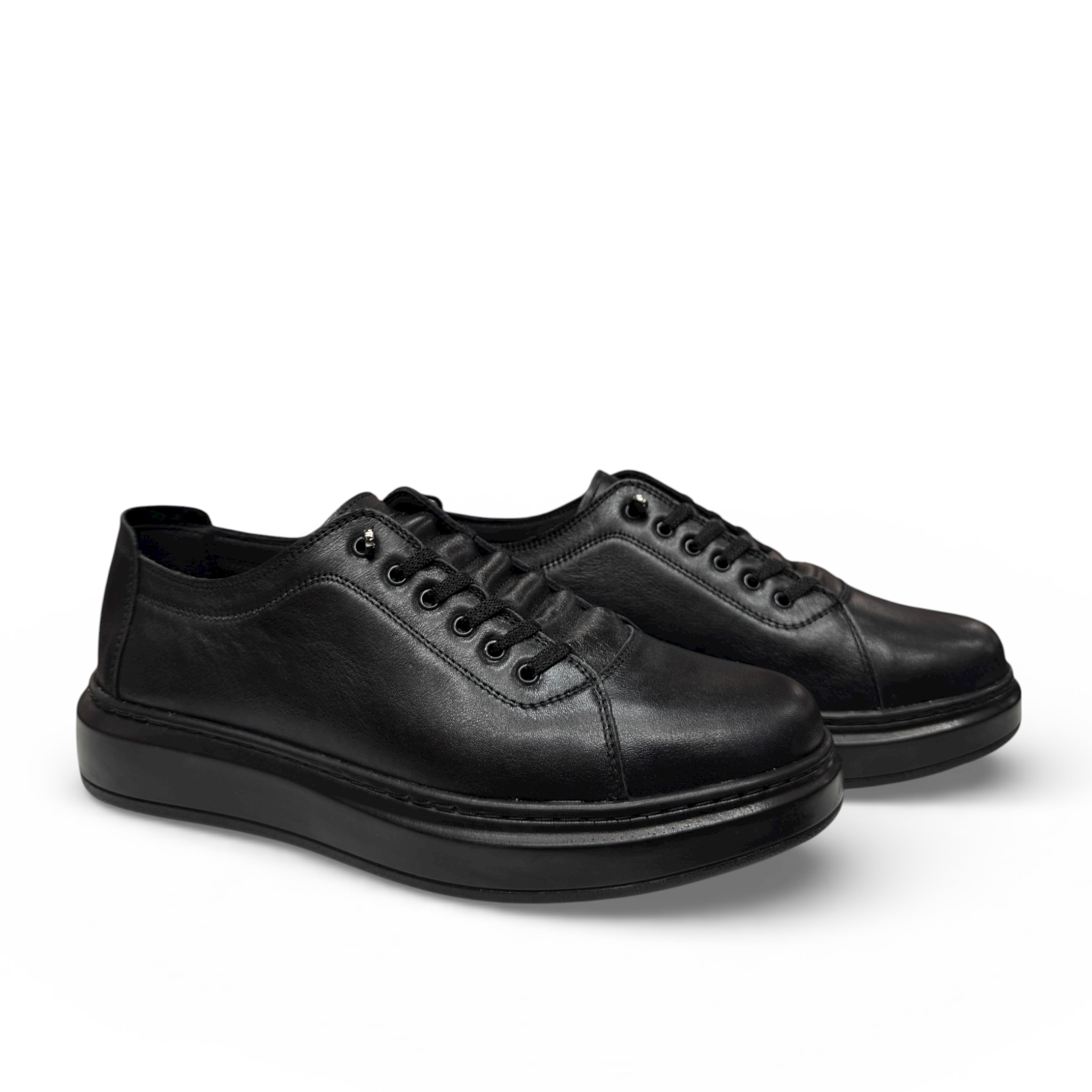 Pantofi pentru bărbați din piele naturală, negri, model clasic, confortabili și ușor de încălțat. Ideali pentru purtare zilnică sau ocazii speciale.